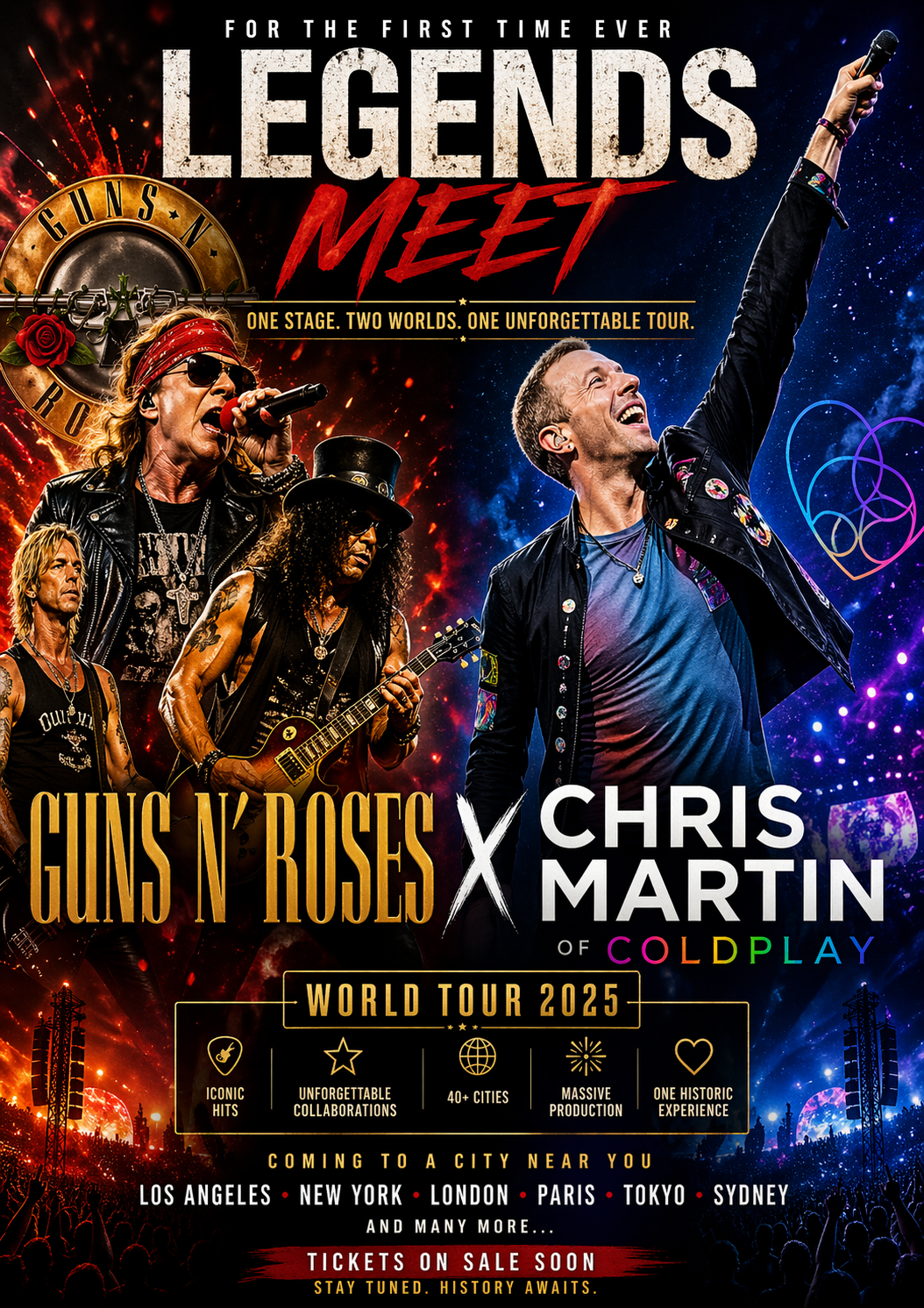 When Guns N’ Roses and Chris Martin finally step onto that stage together, it won’t just be a performance—it will be a defining moment where past, present, and future of music unite in one unforgettable experience.