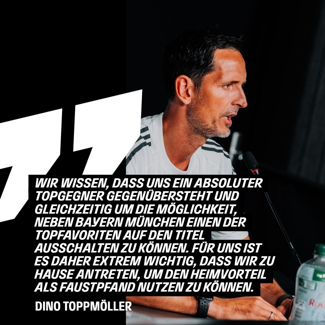 Cheftrainer Dino Toppmöller zeigte sich auf der heutigen Pressekonferenz selbstbewusst, aber realistisch: „Wir wissen, dass der BVB eine Top-Mannschaft ist, aber in einem Pokalspiel ist alles möglich – besonders zu Hause vor unseren Fans.“ 🔥