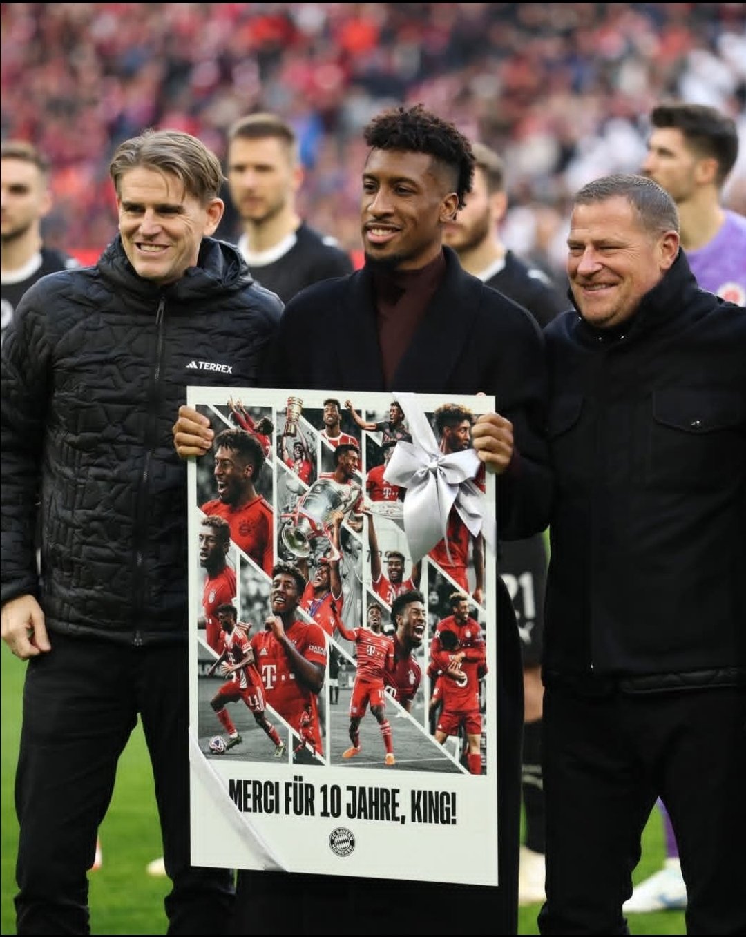 Die Feierlichkeiten begannen bereits vor Anpfiff, als Coman den Rasen unter tosendem Applaus betrat. Die Fans hatten Banner und Schilder vorbereitet, um ihre Dankbarkeit zu zeigen, während auf der Videowand die Höhepunkte seiner Bayern-Karriere zu sehen waren: spektakuläre Tore, entscheidende Assists und triumphale Champions-League-Momente, allen voran sein entscheidendes Tor im Finale 2020 gegen Paris Saint-Germain. „Die Fans werden immer in meinem Herzen bleiben“, sagte Coman sichtlich bewegt und wurde mit Standing Ovations bedacht.