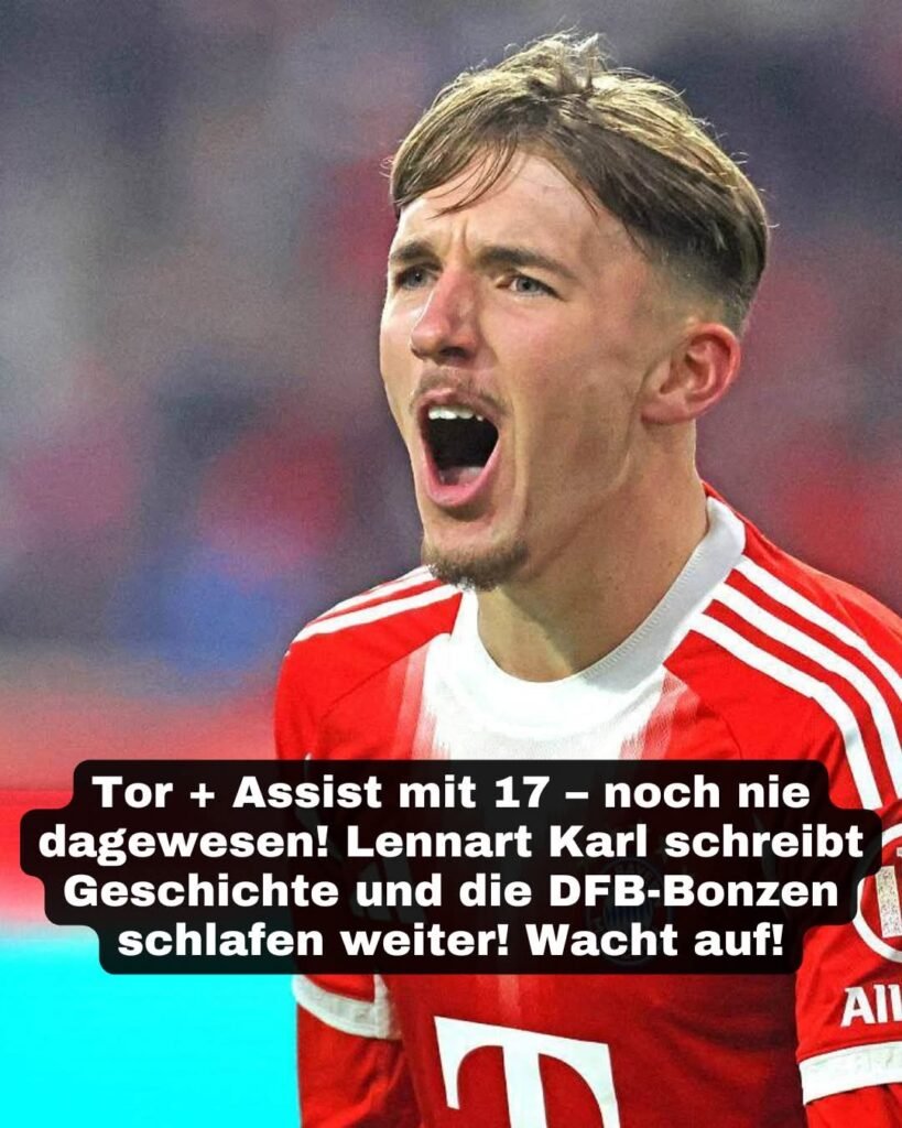Lennart Karl. 17. Siebzehn! Und doch steht er da, nach einem 6:2, nach zwei Toren, nach einem Assist, als hätte er gerade im Training ein lockeres Abschlussspiel hinter sich. Die Kameras auf ihn gerichtet, ganz Deutschland schaut zu – und dieser Junge spricht, als würde er sich für die Gelegenheit entschuldigen, überhaupt gut gespielt zu haben. „Ich versuche einfach, meine Leistung zu bringen.“ Er sagt das, während halb Europa gerade googelt, wer dieser Wunderknabe ist.