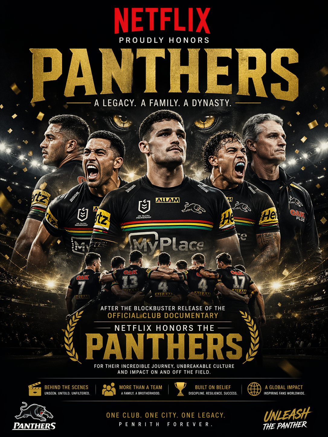 In a moment that perfectly captures the growing intersection between sport and storytelling, Netflix has officially honored the Penrith Panthers following the remarkable success of their newly released club documentary. The production, which delves deep into the heart of one of rugby league’s most dominant modern dynasties, has quickly become a global sensation—earning critical acclaim, massive viewership numbers, and now, formal recognition from the streaming giant itself.