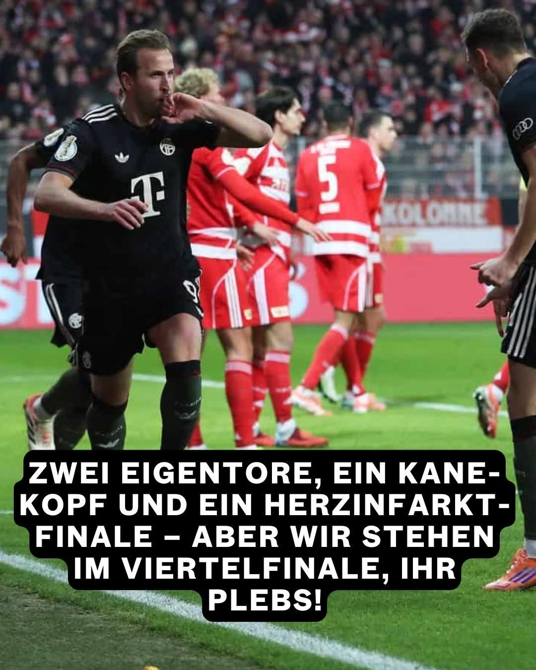Starke Leistung, Red Warriors! Gestern Abend im Alten Forsthaus, tief im Herzen der alten Försterei, haben wir erneut eindrucksvoll demonstriert, warum ganz Deutschland uns gleichzeitig hasst und heimlich liebt. Es liegt nicht nur an unseren Spielern, nicht nur an den grandiosen Einzelkönnern, nicht einmal ausschließlich an unserem Kampfgeist. Es liegt vor allem an dieser unverwechselbaren, unbändigen Mentalität, die uns in jedem noch so dreckigen Pokalfight antreibt: Am Ende stehen wir da, grinsen frech, heben selbstbewusst den Mittelfinger und sagen mit breiter Brust: „Mia san Mia – und ihr könnt uns alle mal!“